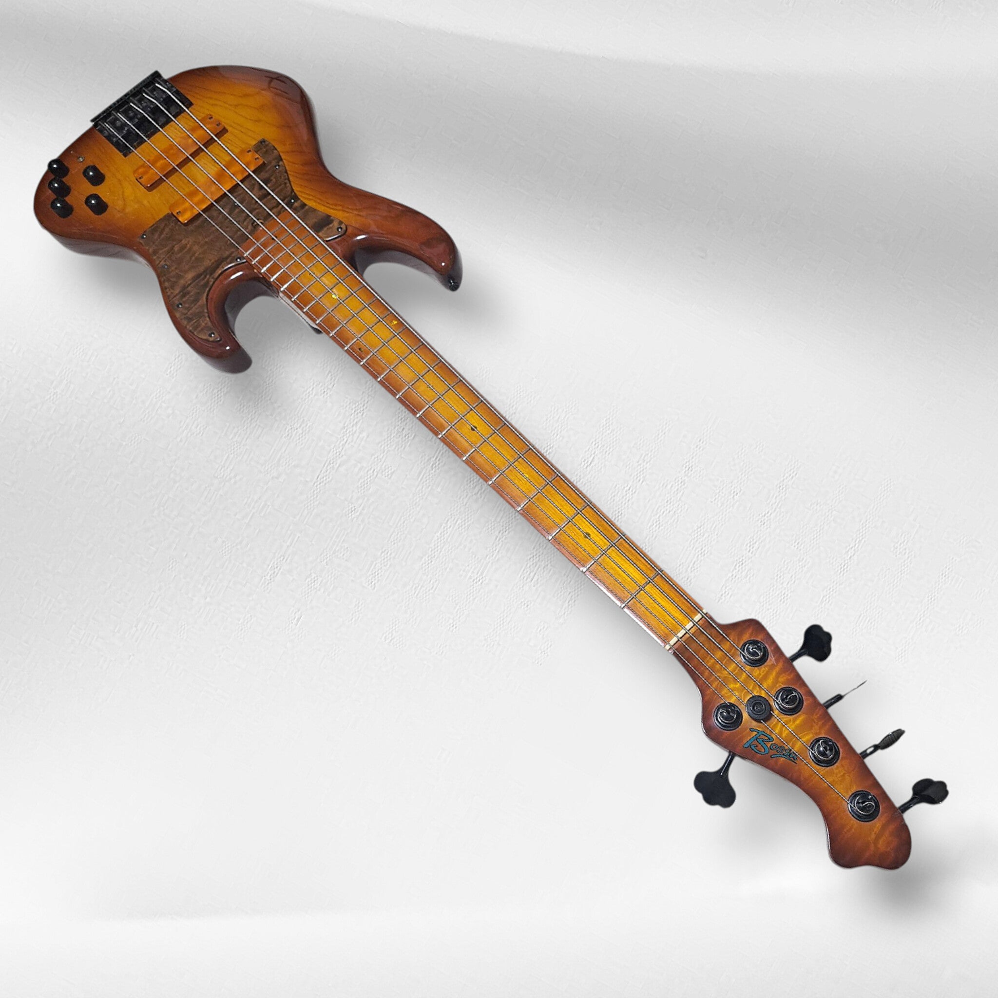 It sets up phenomenally low if desired and has such a brilliant sound set, ideal for studio and stage. From that breaking glass slap tone, or a throaty deep growly front pickup to a creamy rear pickup "quack" at the flick of a switch, this bass does it all!